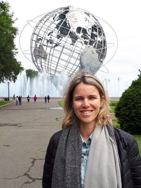 Inés en la Estatua de la Libertad. Visitar la Estatua de la Libertad vale la pena por su valor simbólico y por la fantástica vista de Manhattan. ¡Para subir a la corona hay comprar su entrada mucho antes!
